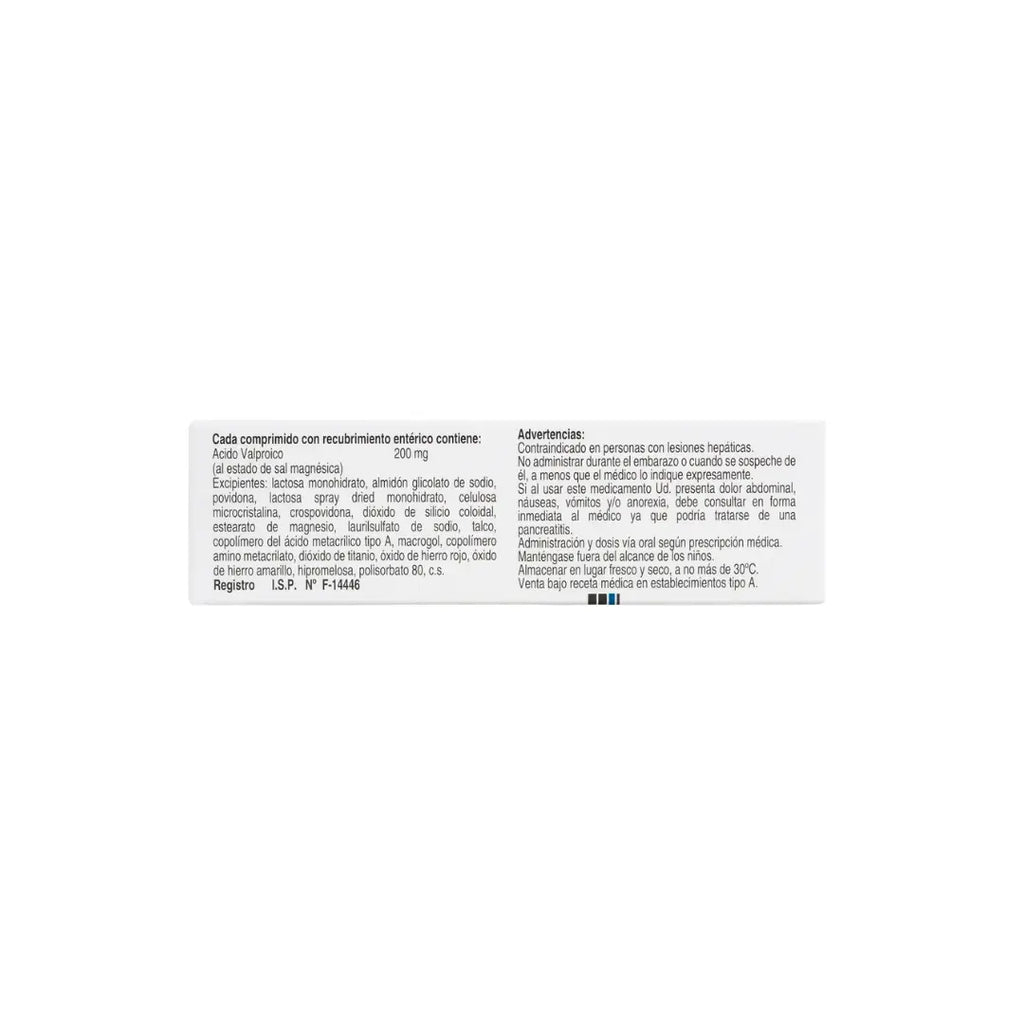 Cada comprimido contiene Ácido Valproico 200 mg.